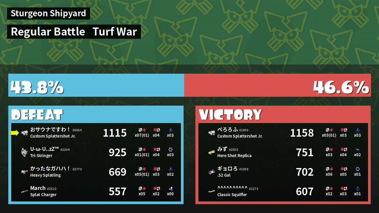 | Mode | Turf War - Regular Battle | ||