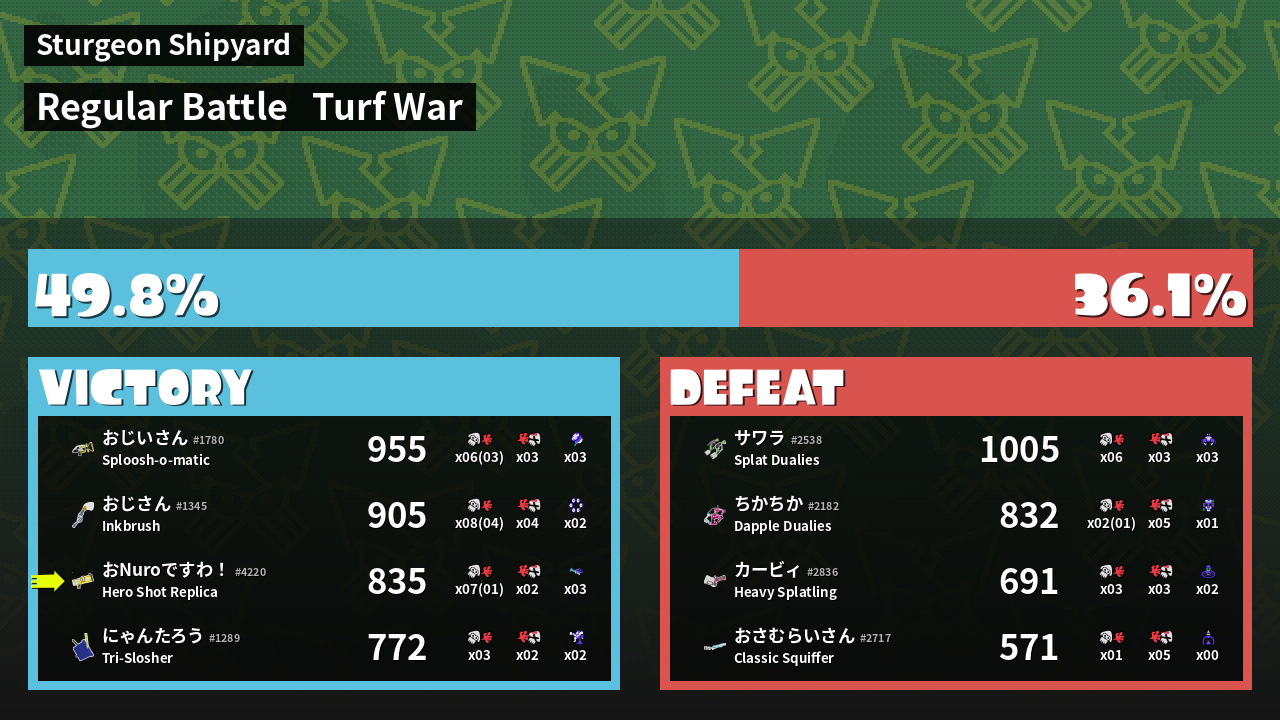 | Mode | Turf War - Regular Battle | ||