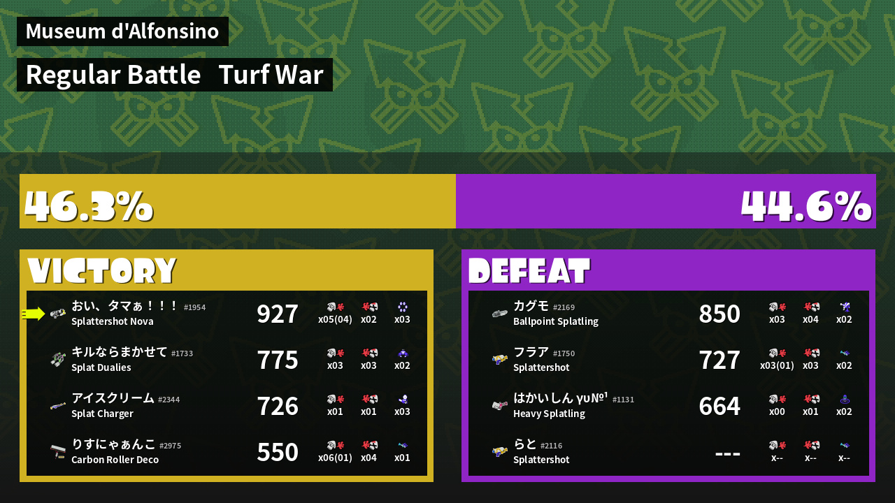 | Mode | Turf War - Regular Battle | ||