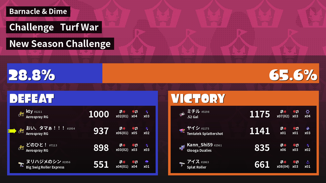 | Mode | Turf War - Challenge | ||