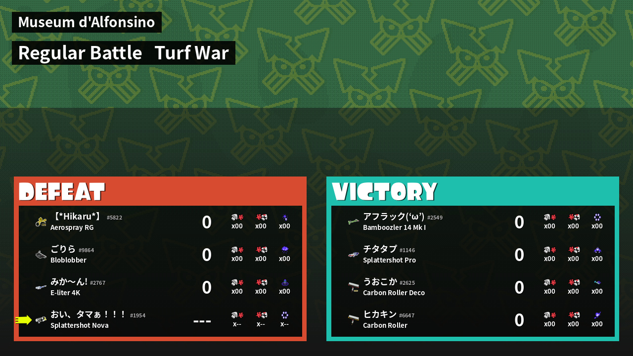 | Mode | Turf War - Regular Battle | ||