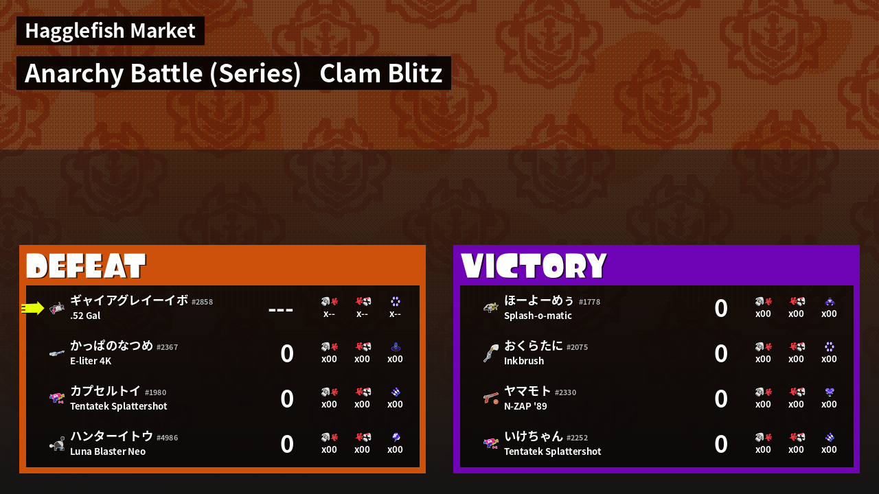 | Mode | Clam Blitz - Anarchy Battle (Series) | ||