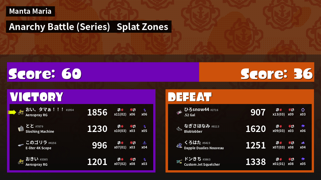| Mode | Splat Zones - Anarchy Battle (Series) | ||
