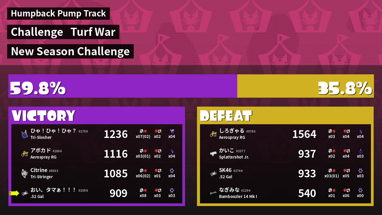 | Mode | Turf War - Challenge | ||