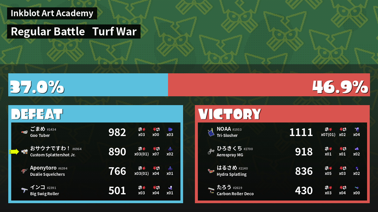 | Mode | Turf War - Regular Battle | ||