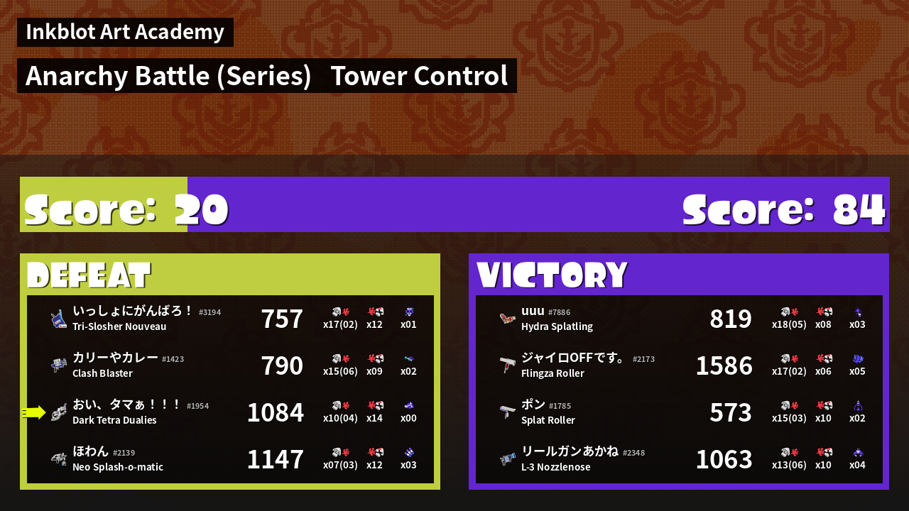 | Mode | Tower Control - Anarchy Battle (Series) | ||