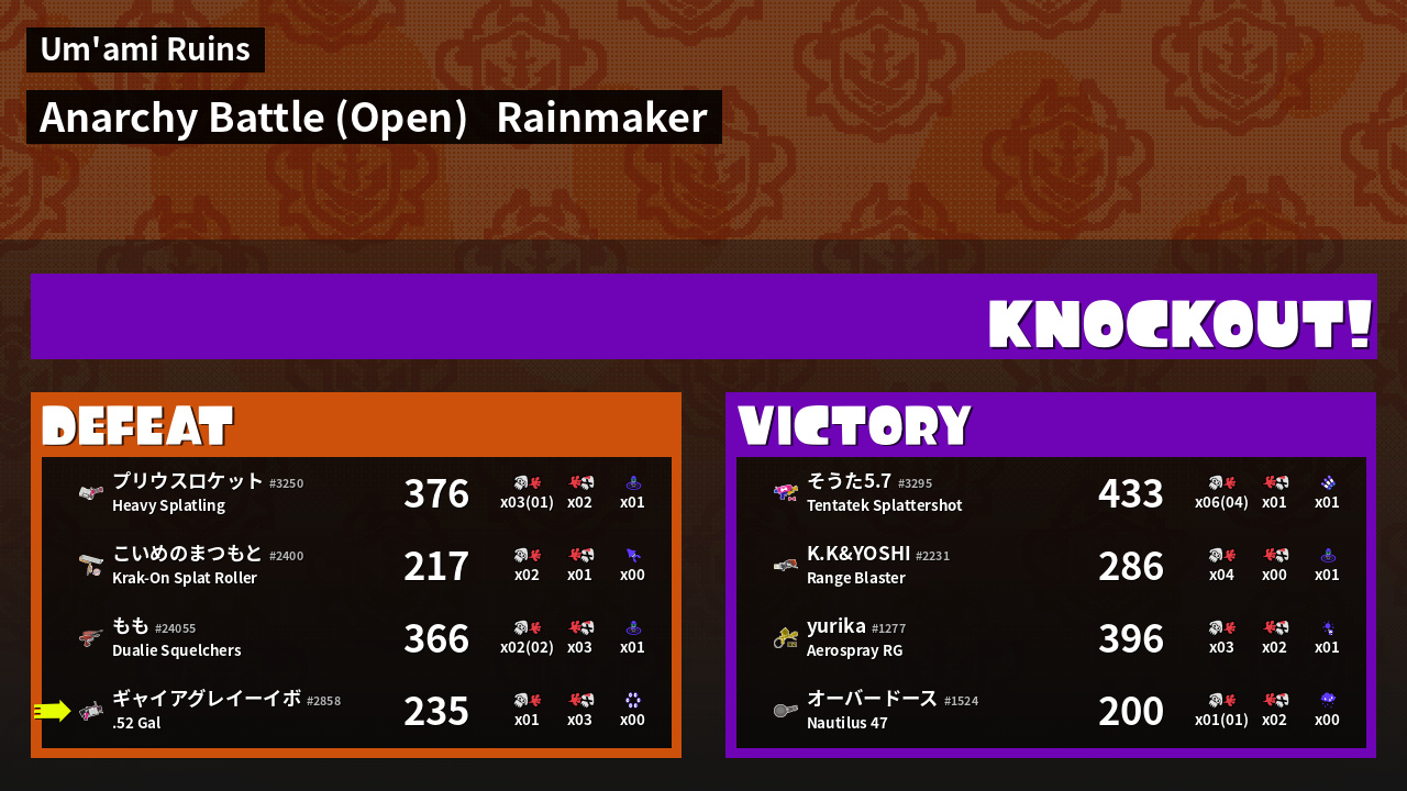 | Mode | Rainmaker - Anarchy Battle (Open) | ||