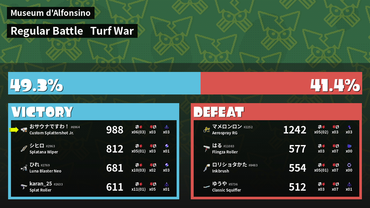 | Mode | Turf War - Regular Battle | ||