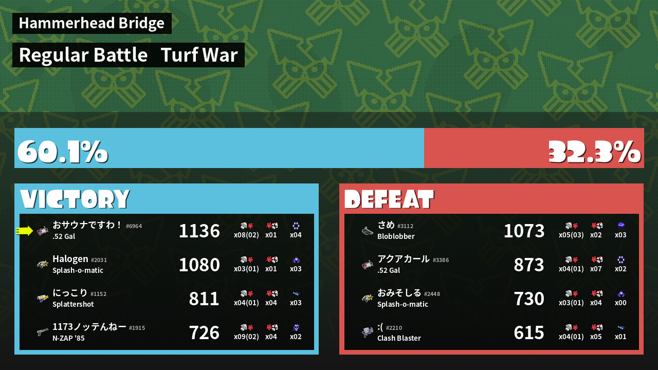 | Mode | Turf War - Regular Battle | ||