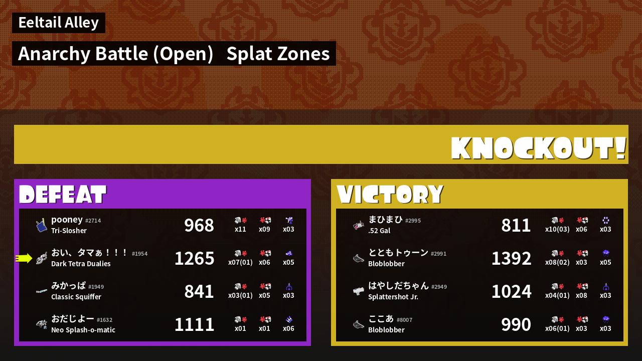 | Mode | Splat Zones - Anarchy Battle (Open) | ||