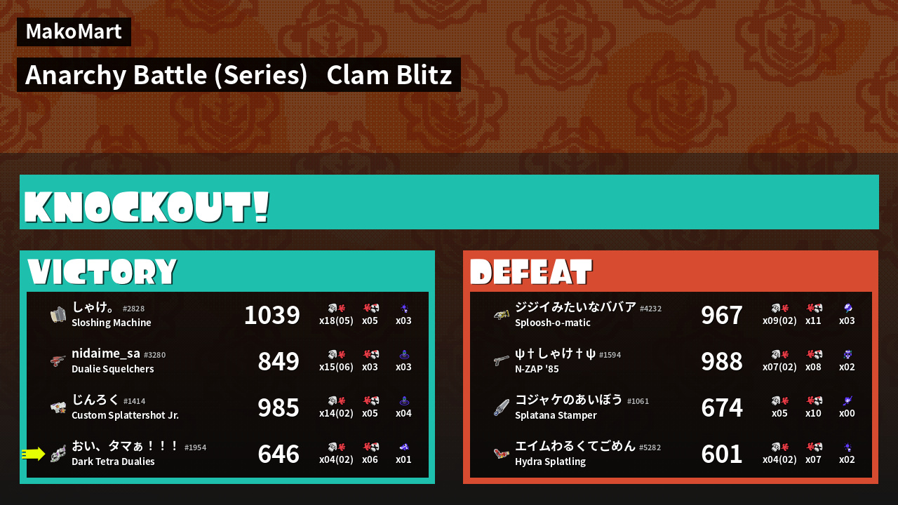 | Mode | Clam Blitz - Anarchy Battle (Series) | ||