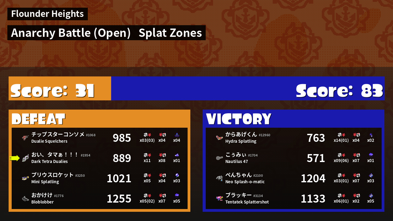 | Mode | Splat Zones - Anarchy Battle (Open) | ||