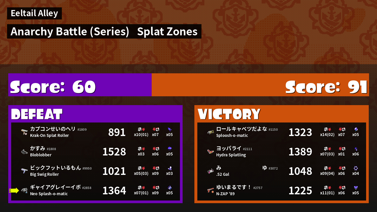 | Mode | Splat Zones - Anarchy Battle (Series) | ||