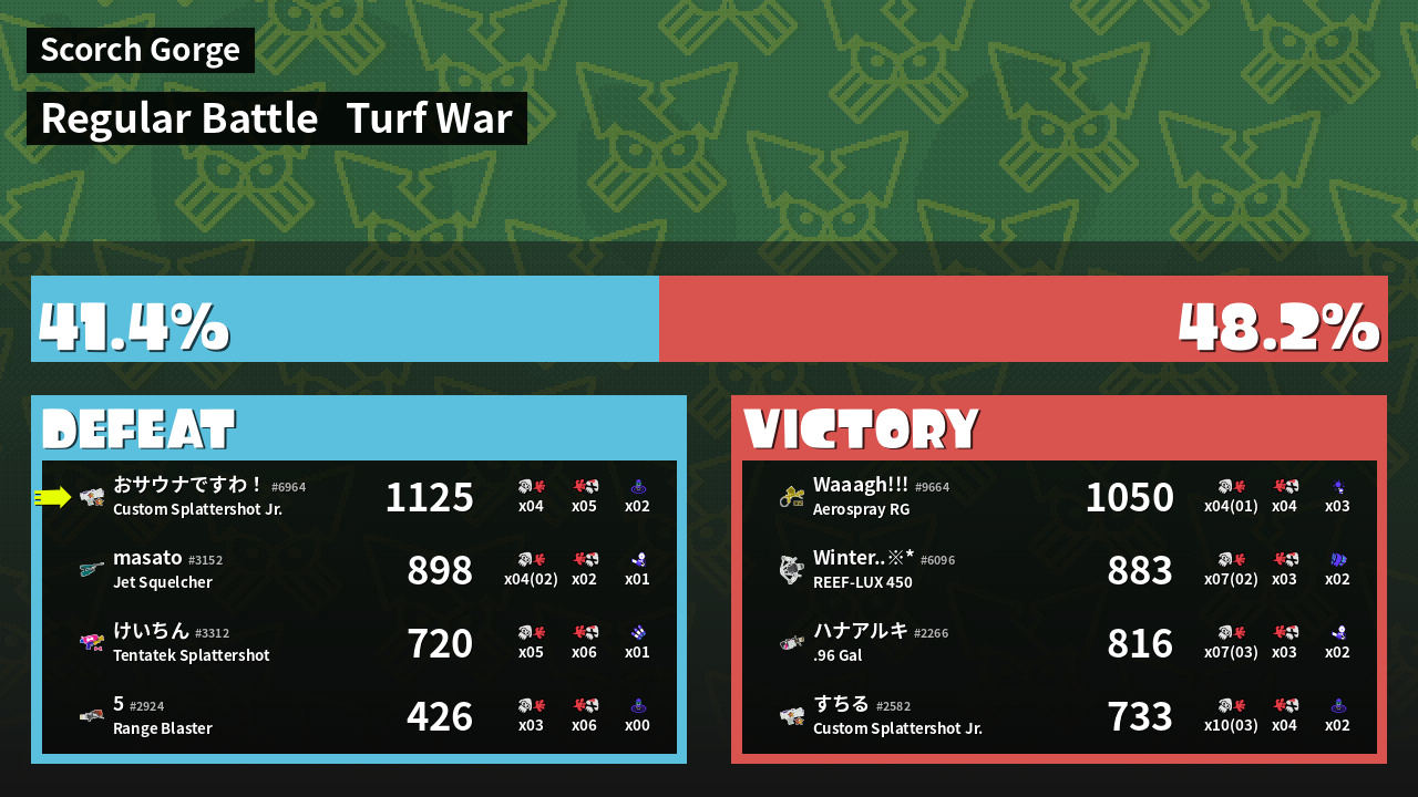 | Mode | Turf War - Regular Battle | ||