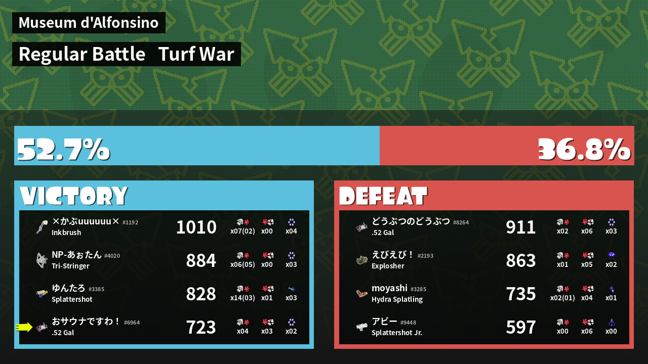| Mode | Turf War - Regular Battle | ||