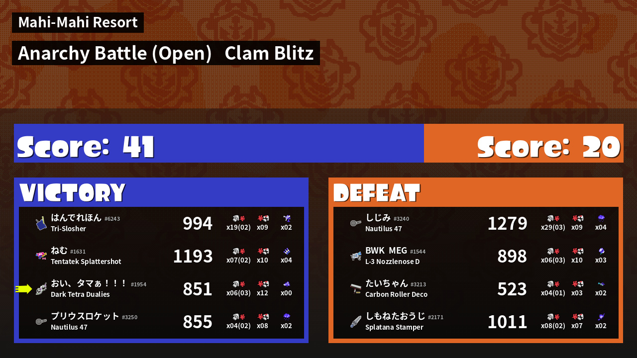 | Mode | Clam Blitz - Anarchy Battle (Open) | ||