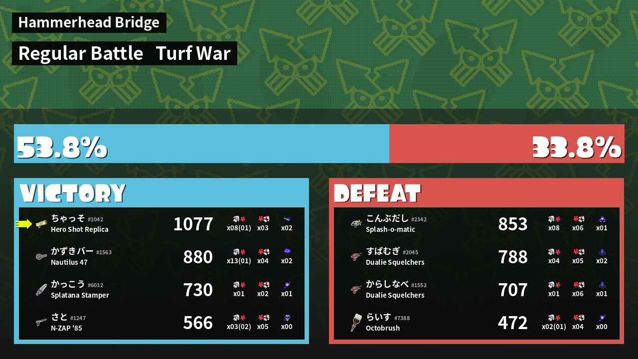 | Mode | Turf War - Regular Battle | ||