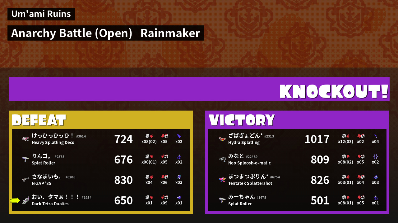 | Mode | Rainmaker - Anarchy Battle (Open) | ||