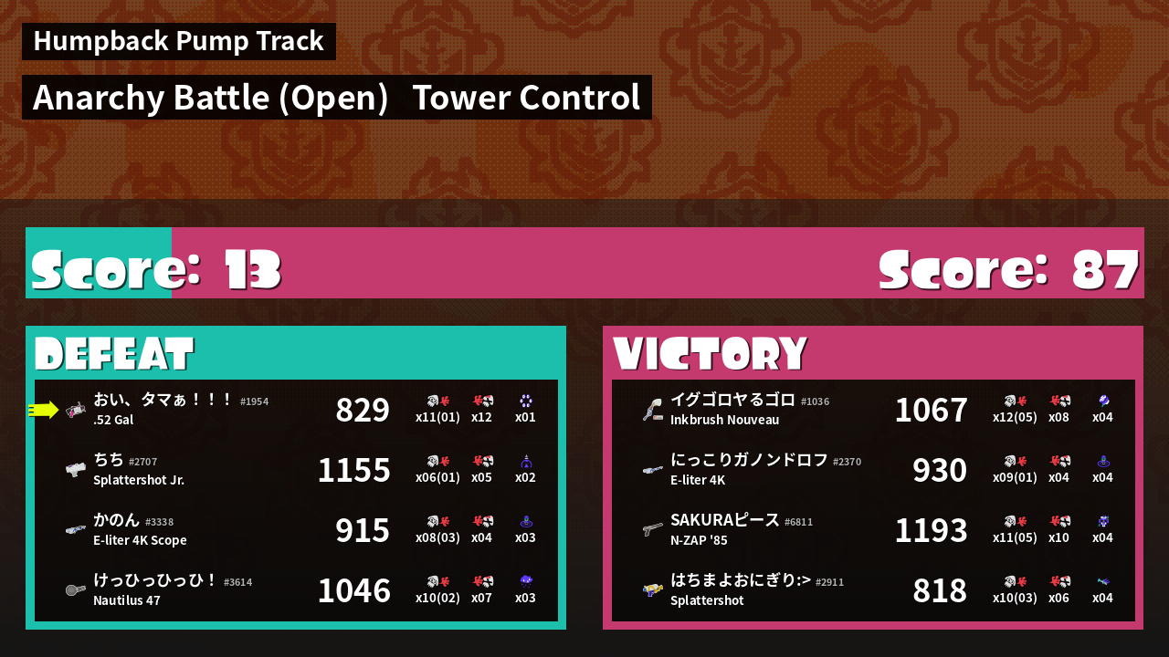 | Mode | Tower Control - Anarchy Battle (Open) | ||