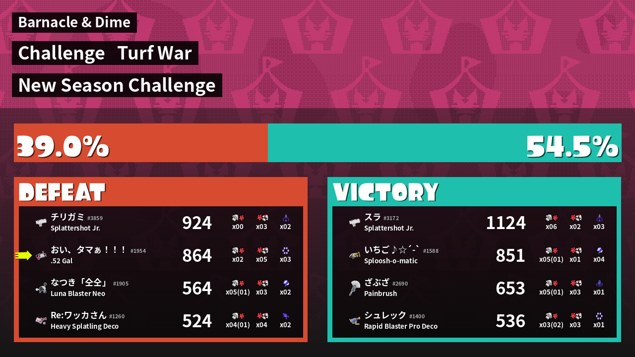 | Mode | Turf War - Challenge | ||