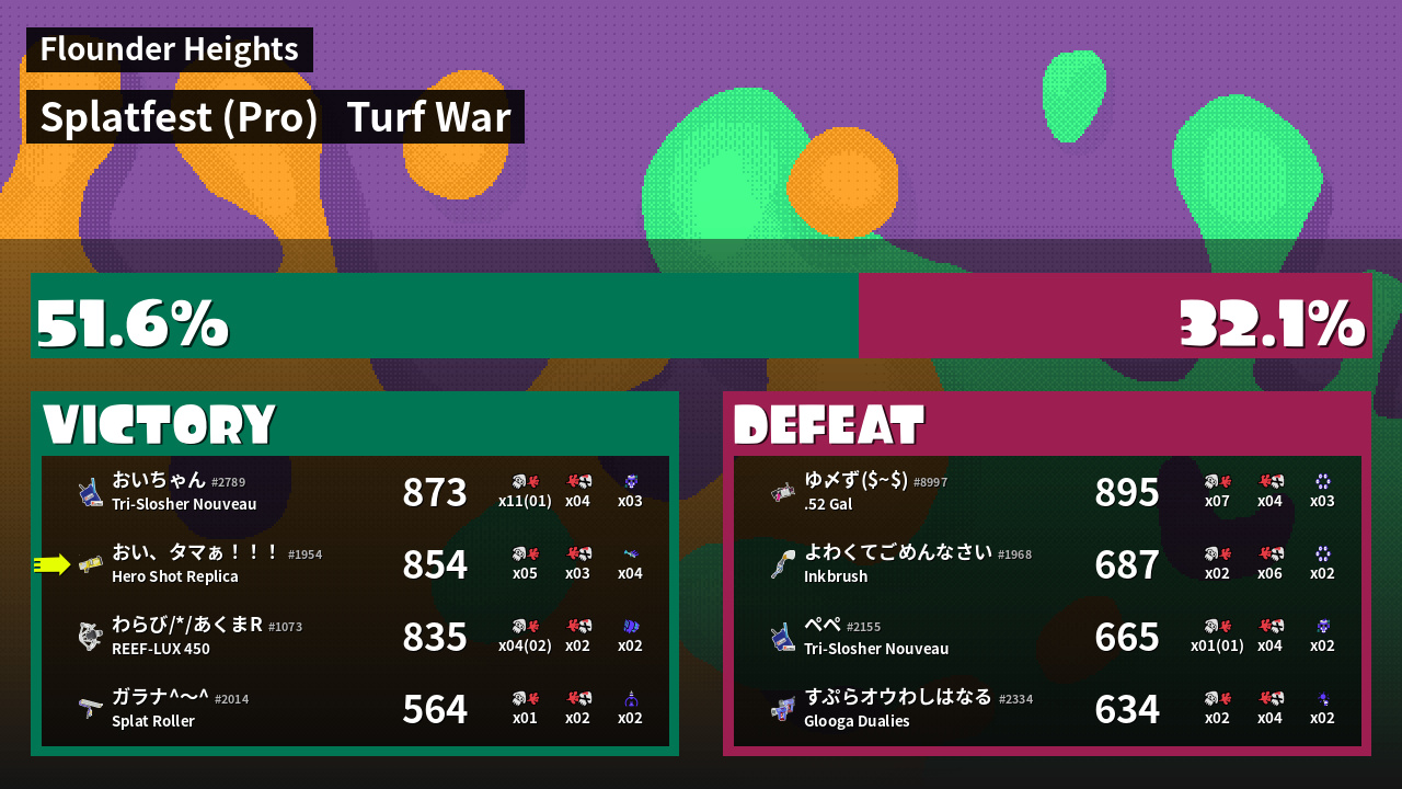 | Mode | Turf War - Splatfest (Pro) | ||