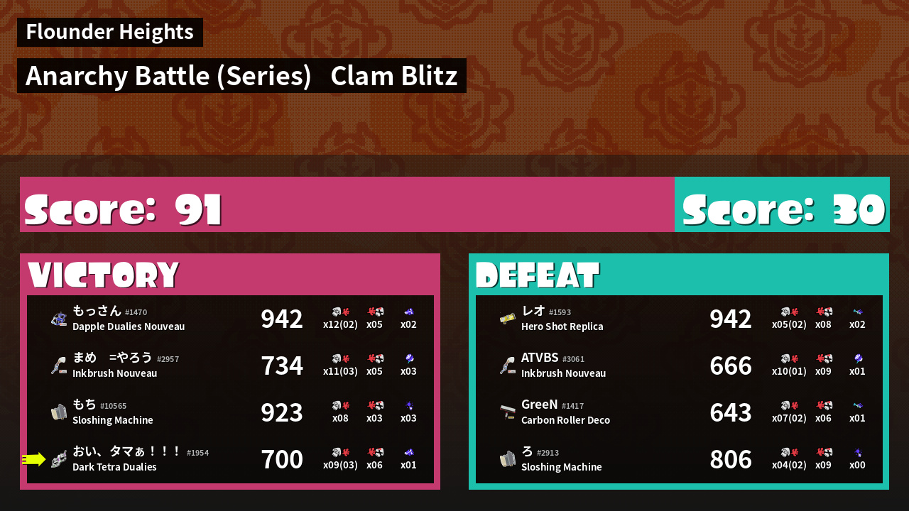 | Mode | Clam Blitz - Anarchy Battle (Series) | ||