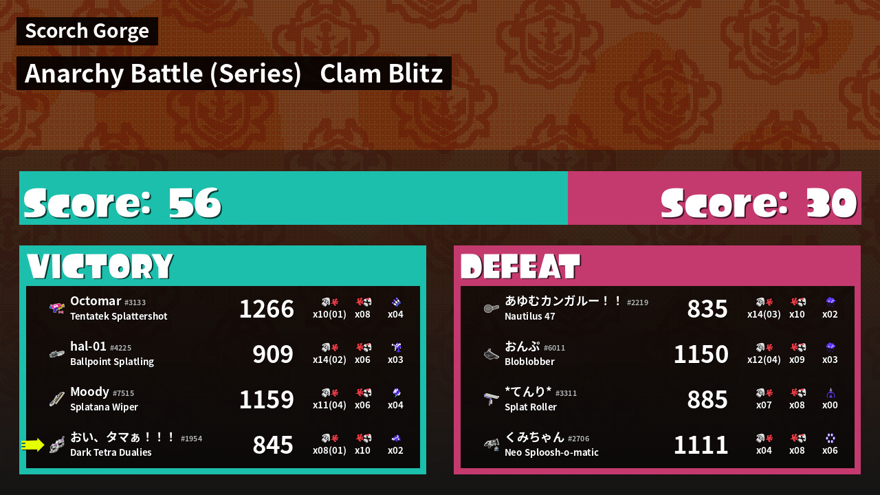 | Mode | Clam Blitz - Anarchy Battle (Series) | ||