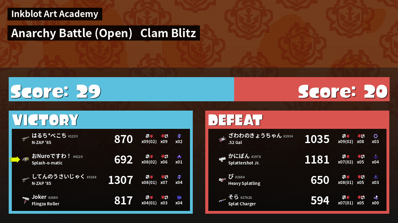 | Mode | Clam Blitz - Anarchy Battle (Open) | ||