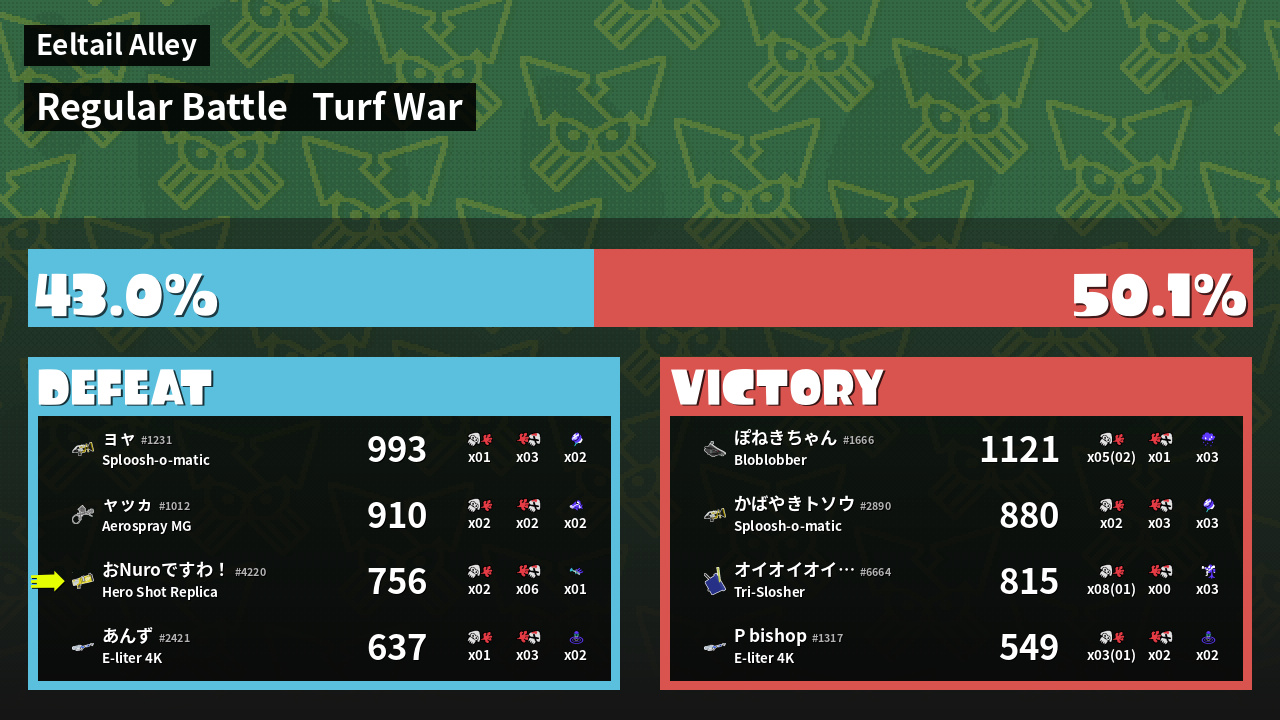 | Mode | Turf War - Regular Battle | ||
