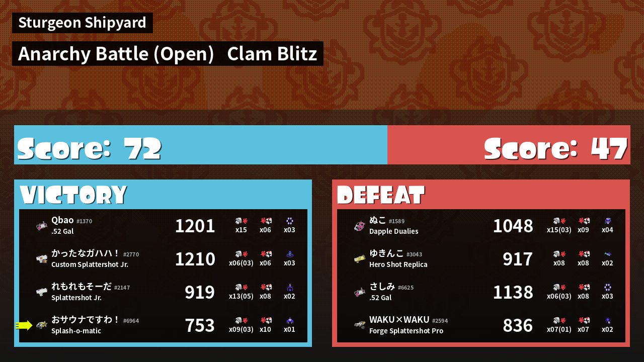| Mode | Clam Blitz - Anarchy Battle (Open) | ||