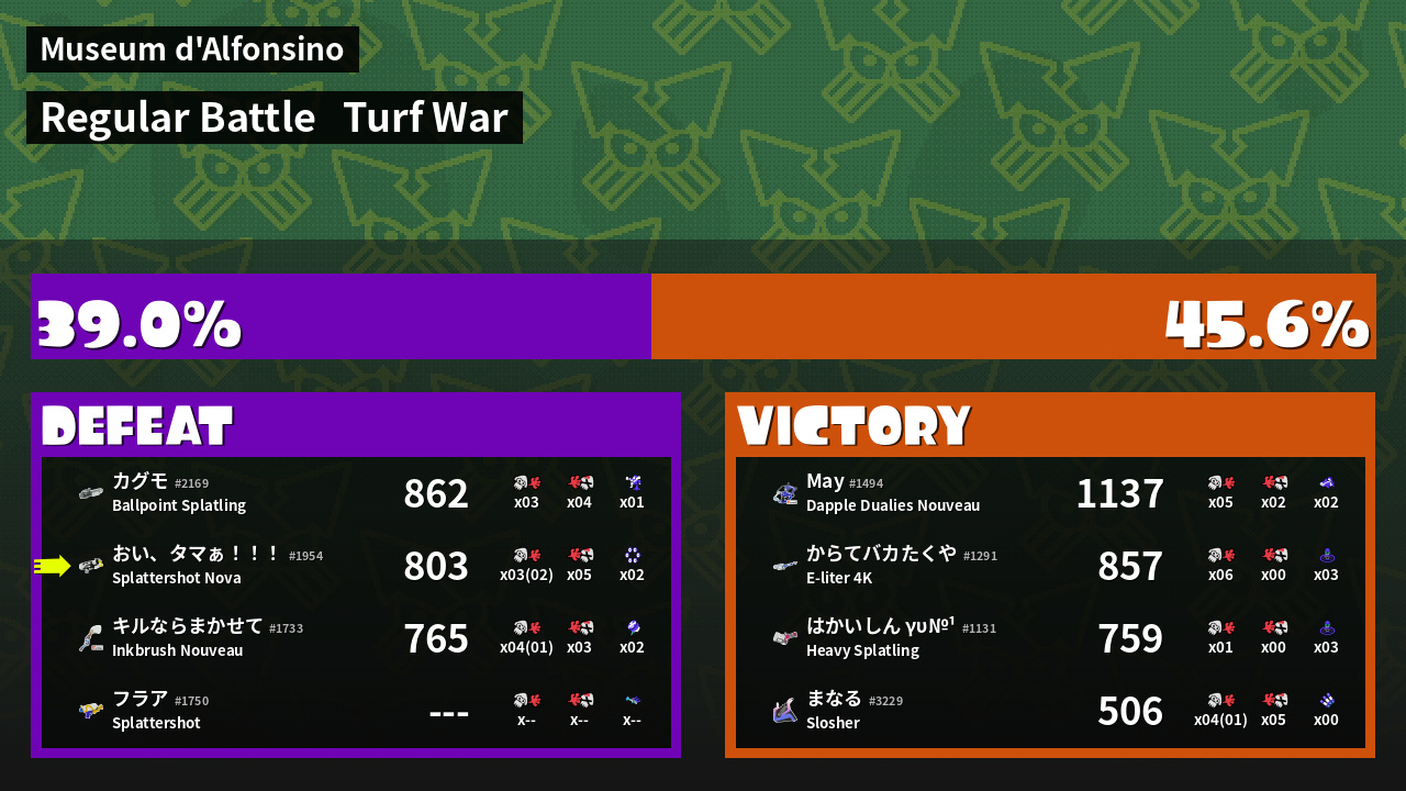 | Mode | Turf War - Regular Battle | ||