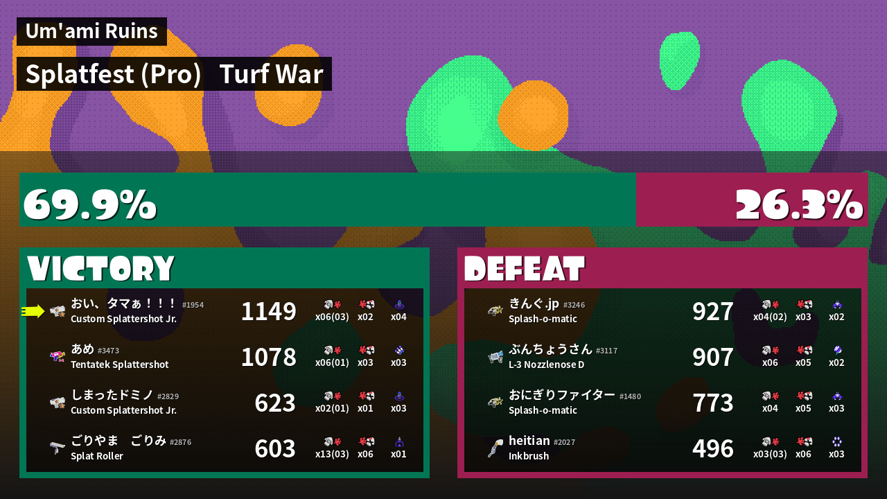 | Mode | Turf War - Splatfest (Pro) | ||