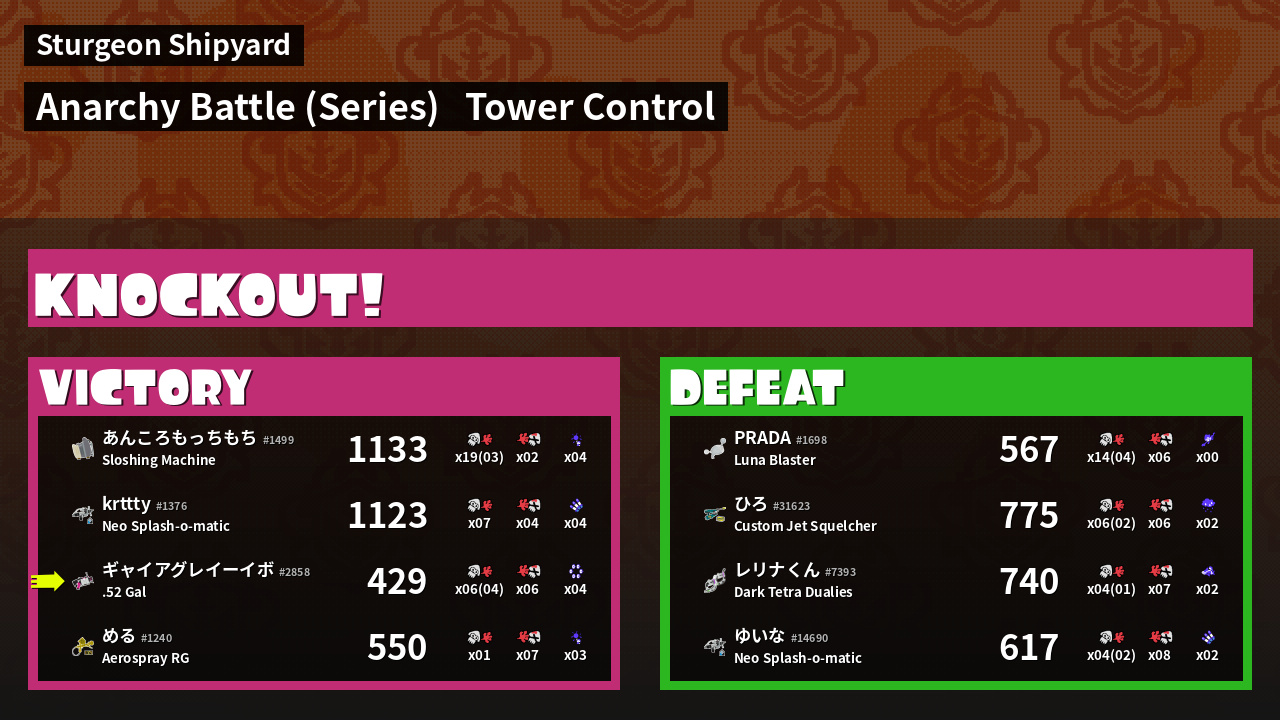 | Medals | #1 Splat Assister #1 Ground Traveler #1 Killer Wail 5.1 User | ||