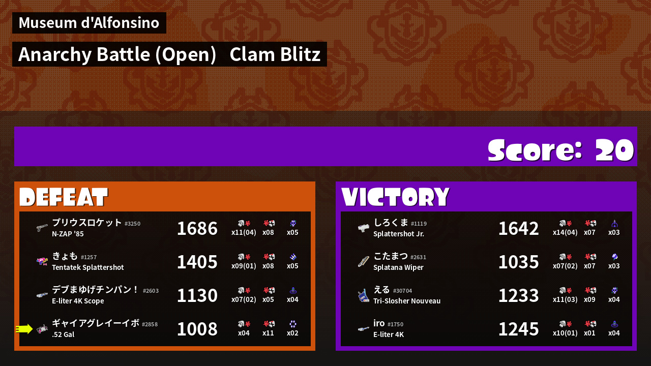 | Mode | Clam Blitz - Anarchy Battle (Open) | ||