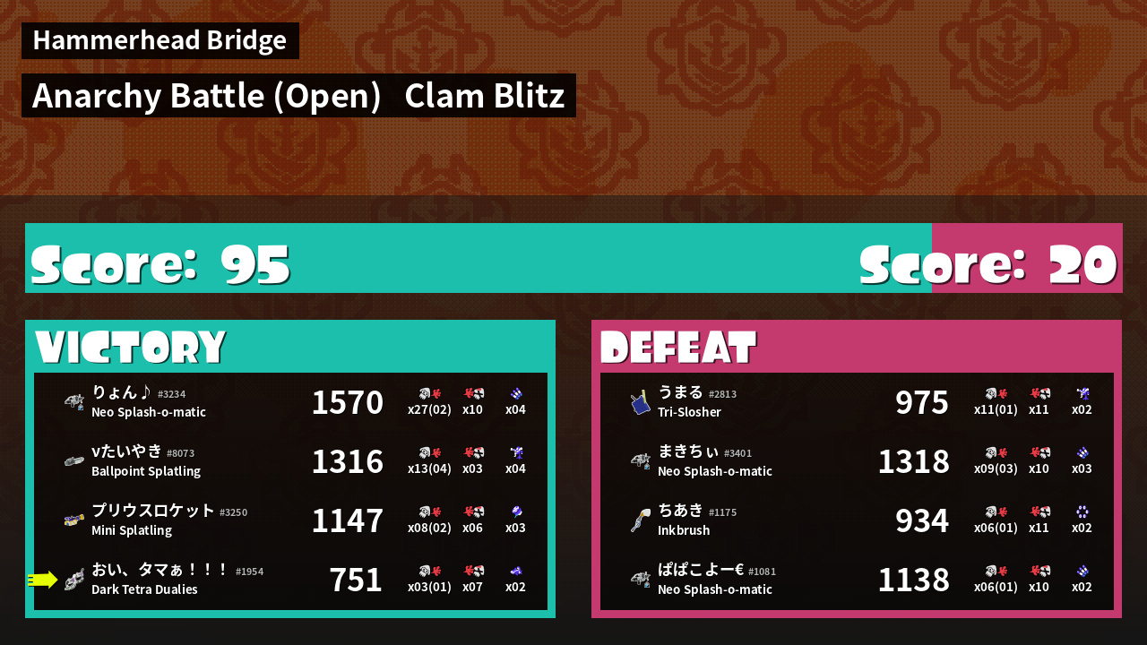 | Mode | Clam Blitz - Anarchy Battle (Open) | ||
