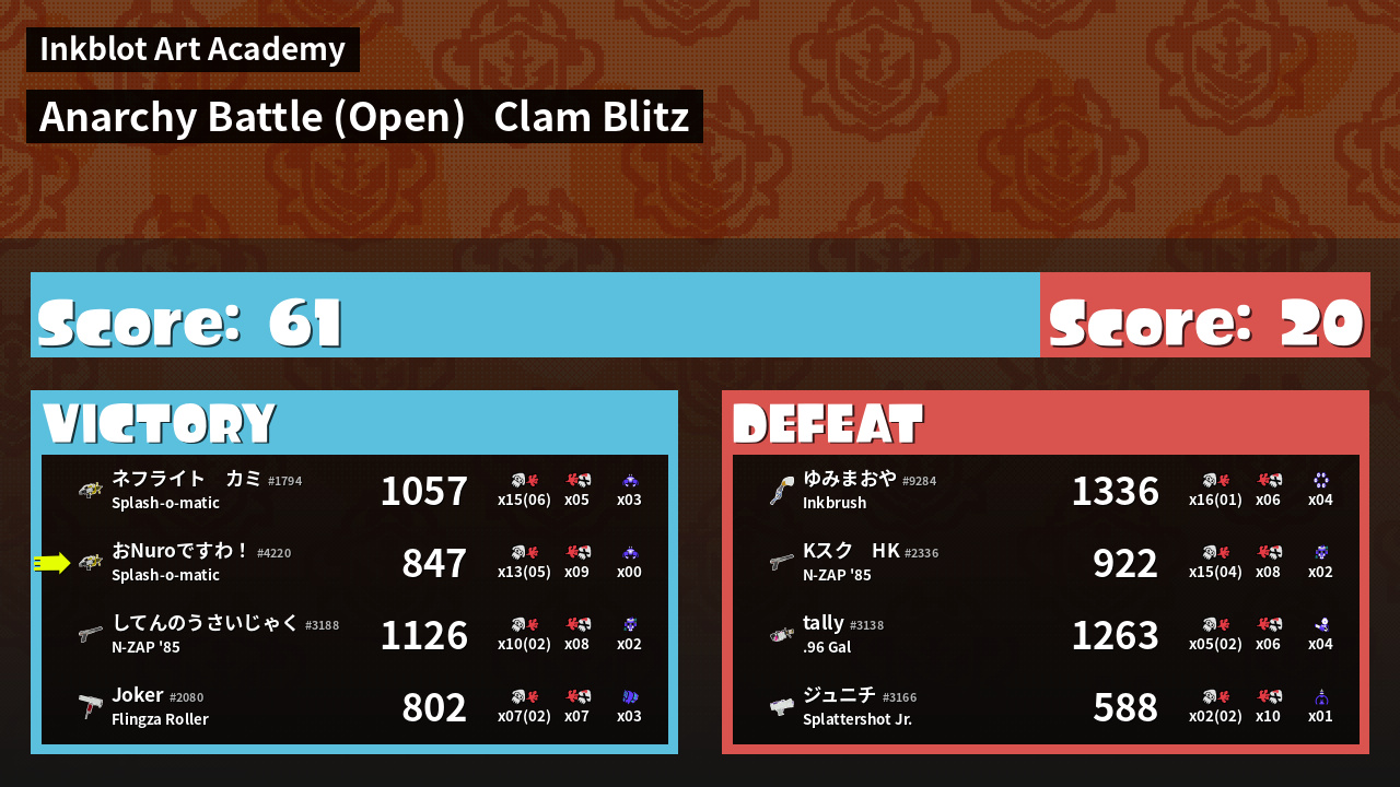 | Mode | Clam Blitz - Anarchy Battle (Open) | ||