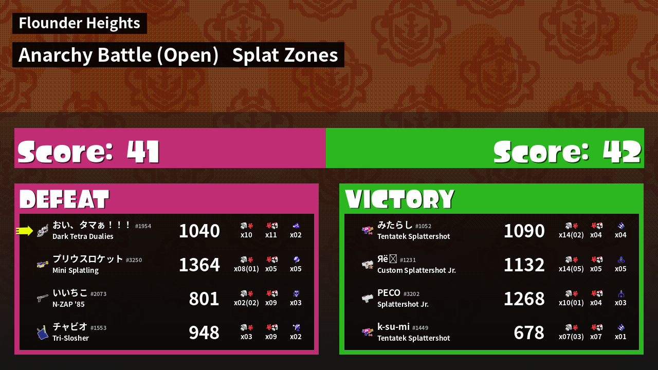| Mode | Splat Zones - Anarchy Battle (Open) | ||