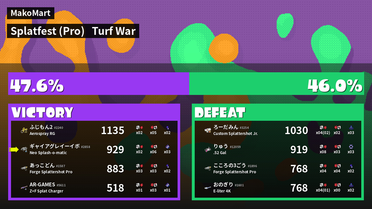 | Mode | Turf War - Splatfest (Pro) | ||