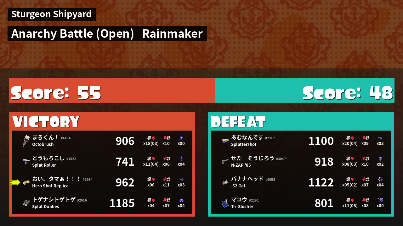 | Mode | Rainmaker - Anarchy Battle (Open) | ||
