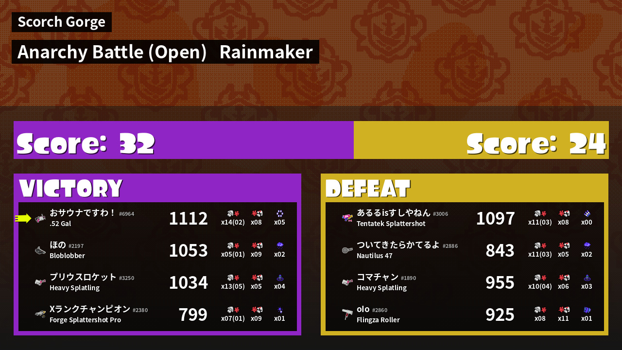 | Mode | Rainmaker - Anarchy Battle (Open) | ||