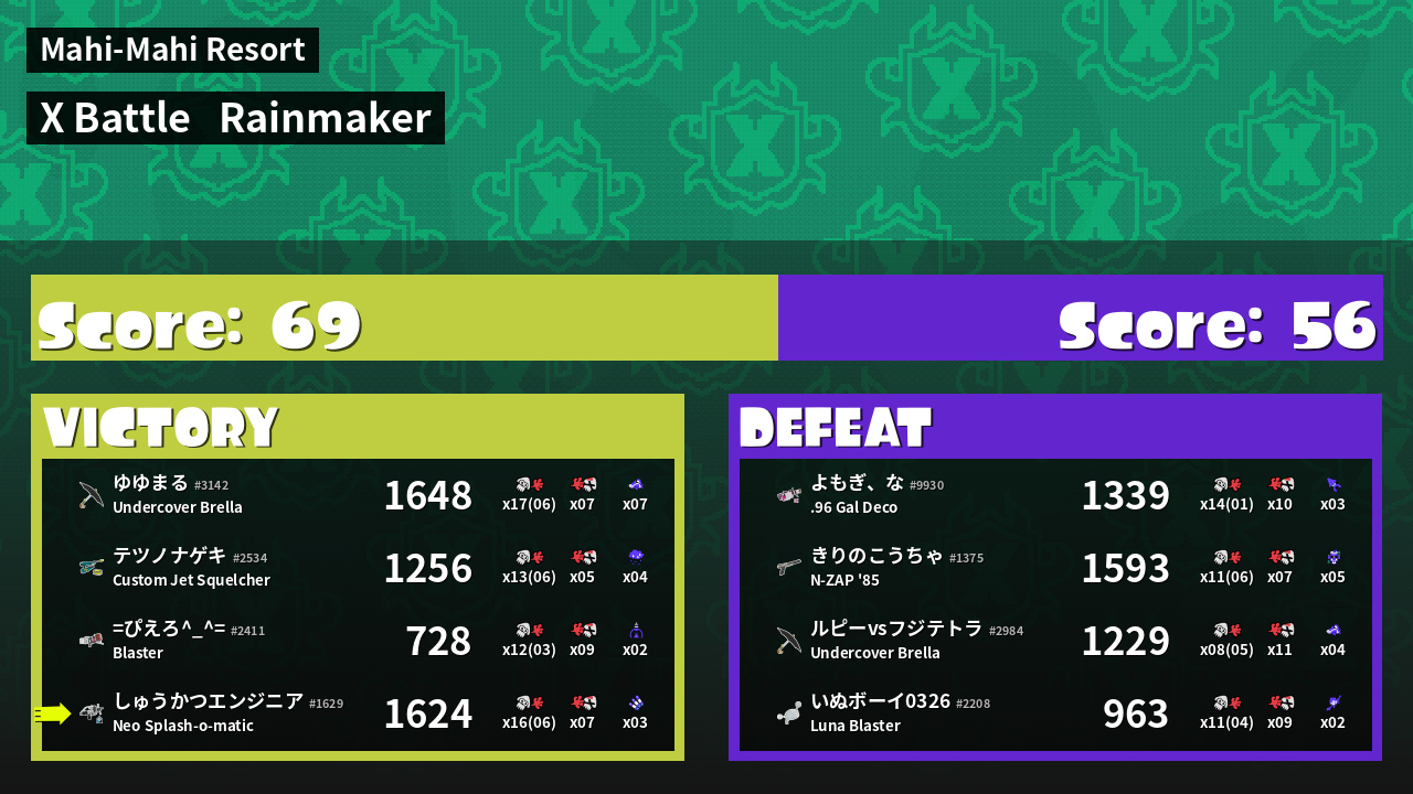 | Medals | #1 Splat Assister #1 Rainmaker Carrier #1 Rainmaker Stopper | ||