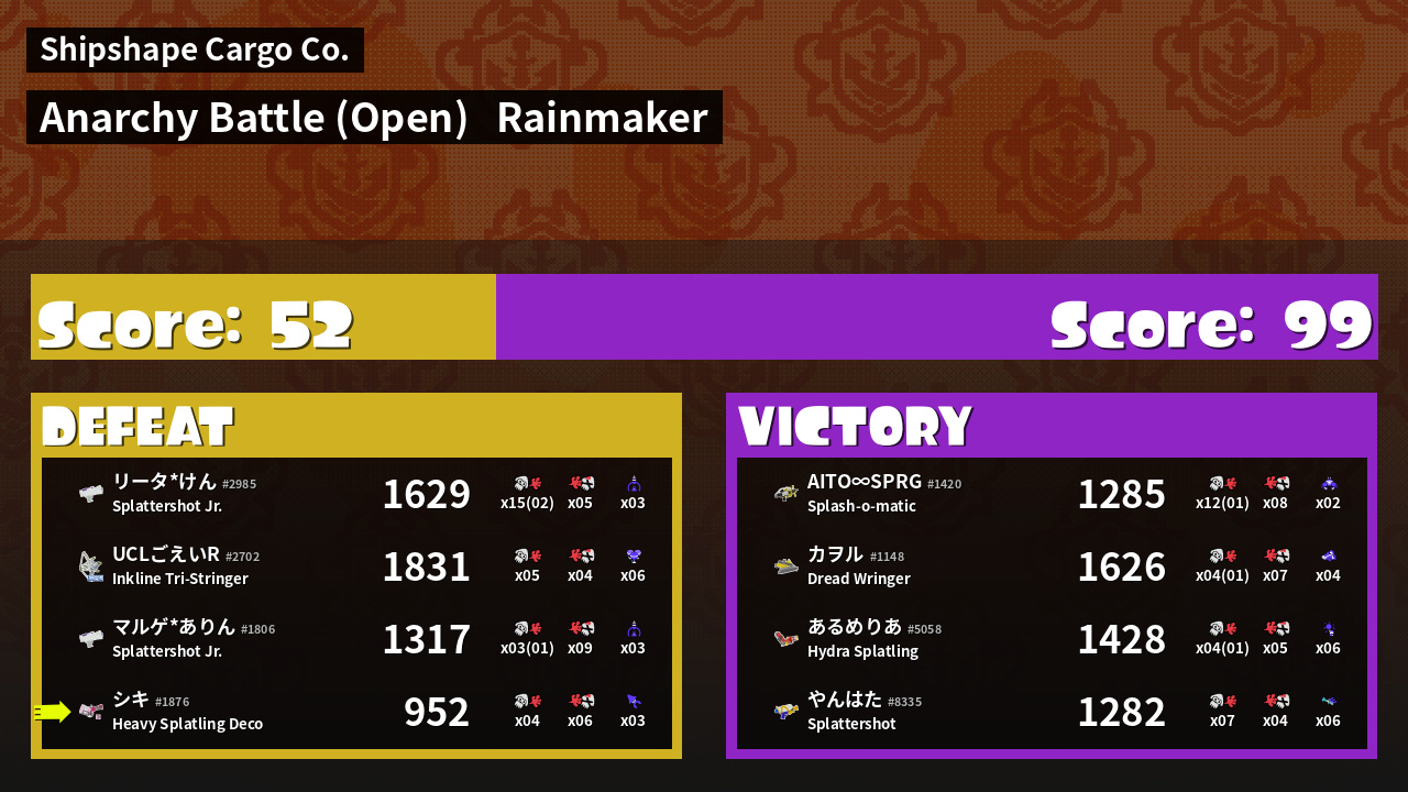 | Mode | Rainmaker - Anarchy Battle (Open) | ||