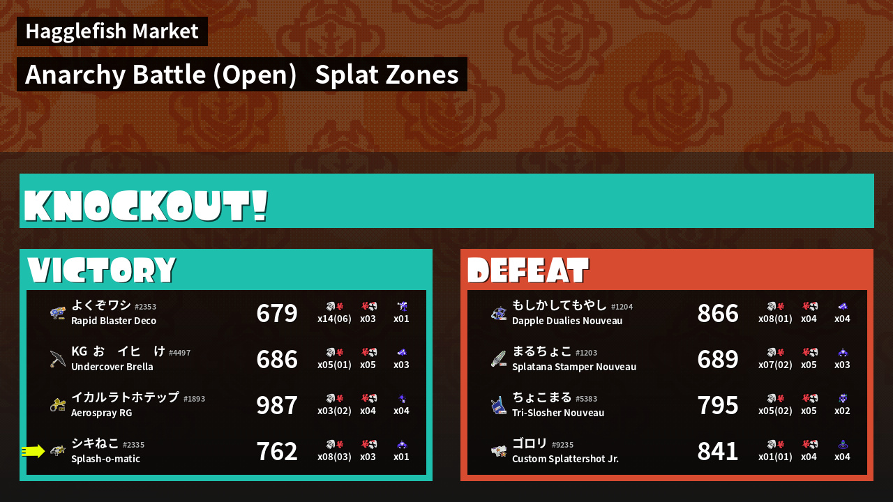 | Mode | Splat Zones - Anarchy Battle (Open) | ||