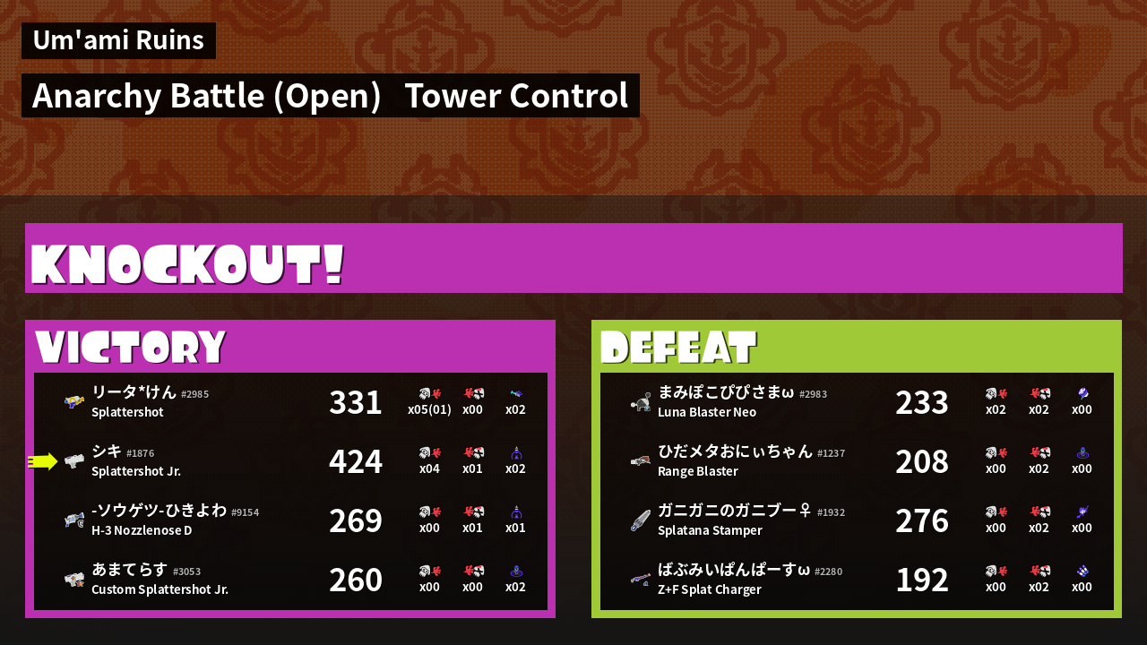 | Mode | Tower Control - Anarchy Battle (Open) | ||