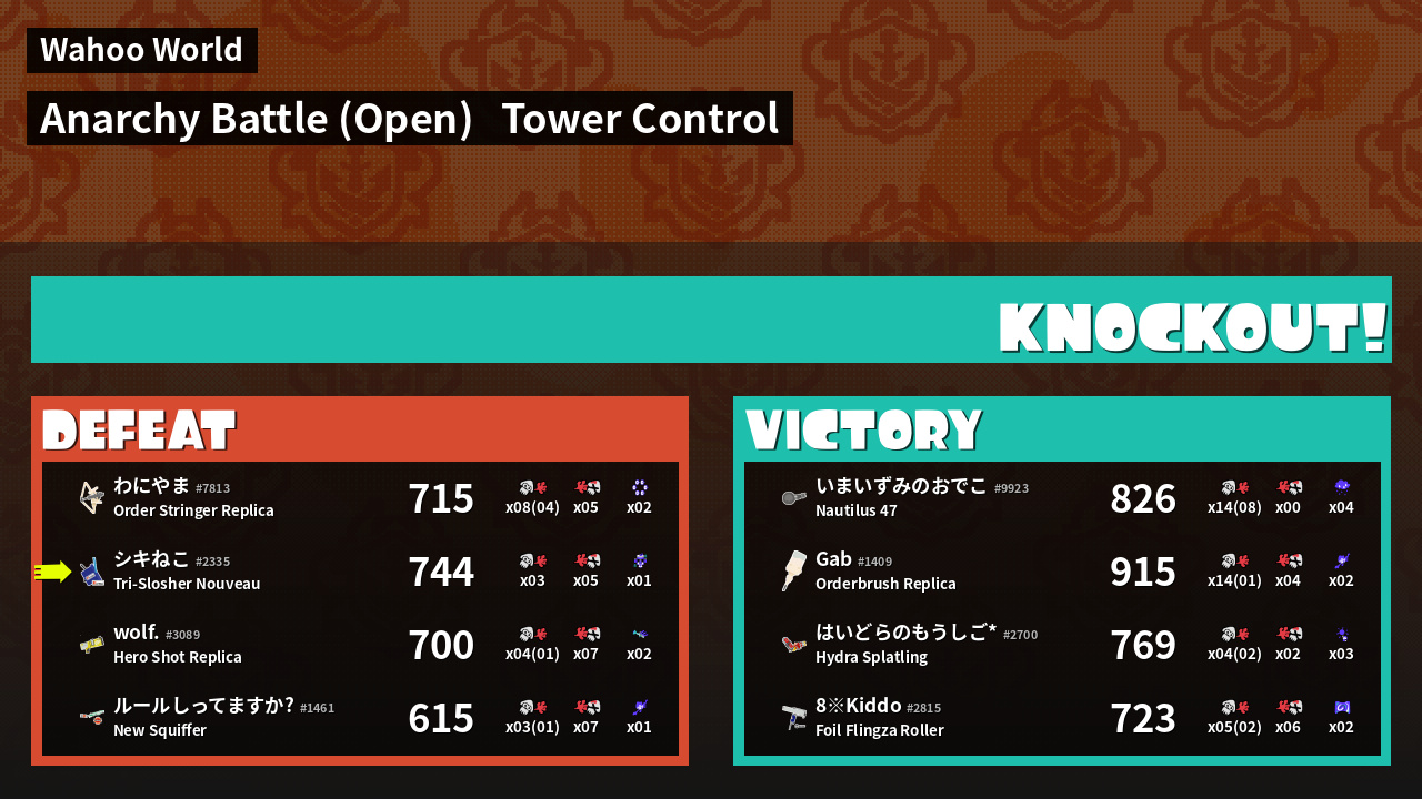| Mode | Tower Control - Anarchy Battle (Open) | ||