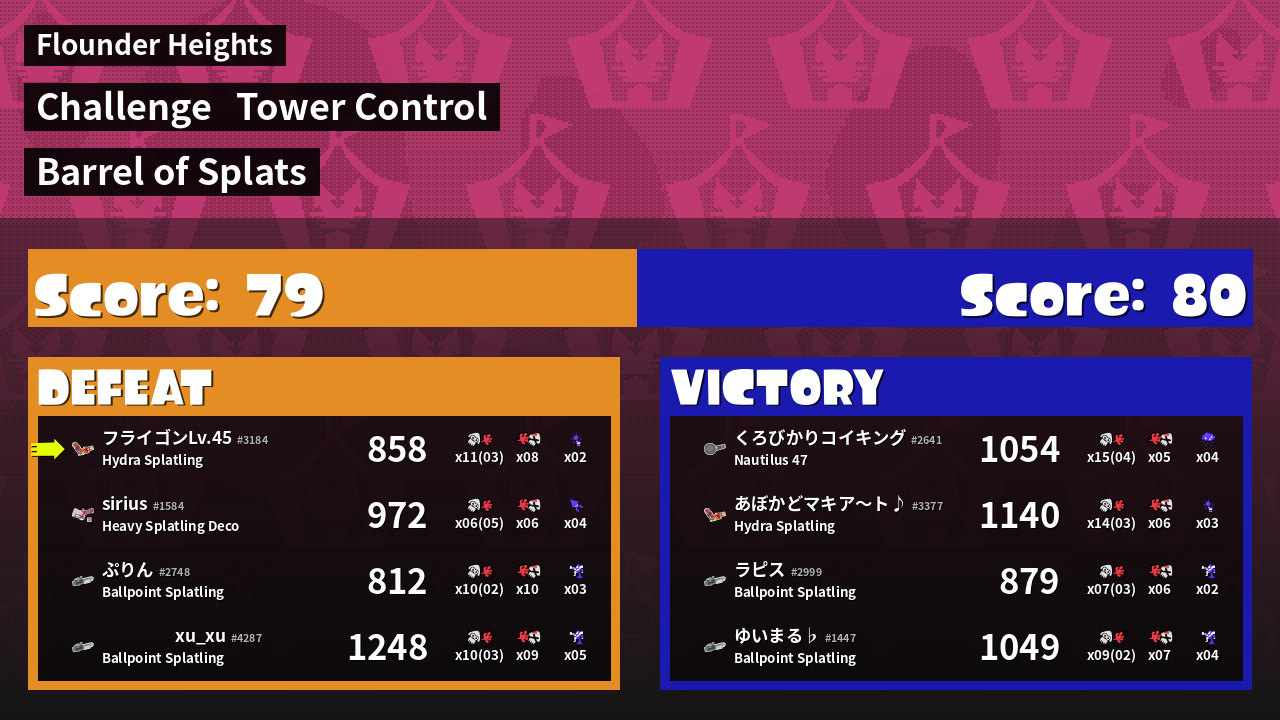 Challenge | Barrel of Splats Muster as much firepower as you can<br />in this battle of the splatlings! | ||