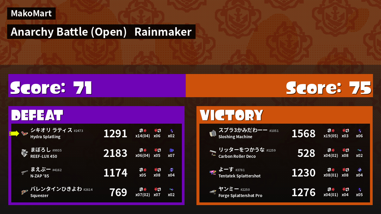 | Mode | Rainmaker - Anarchy Battle (Open) | ||