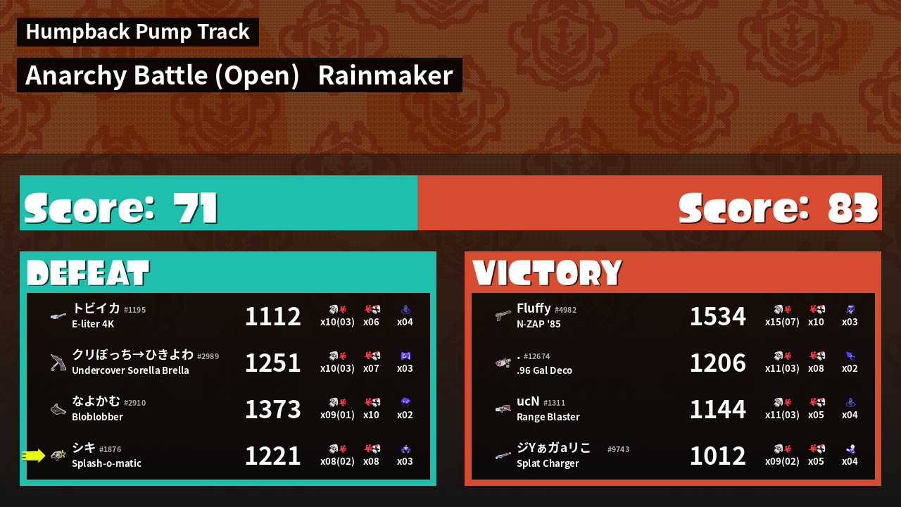 | Mode | Rainmaker - Anarchy Battle (Open) | ||