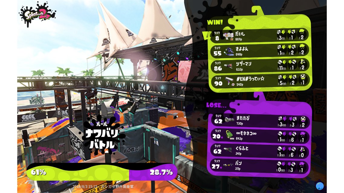 | Mode | Turf War - Regular Battle | |||||||||||||||||||||||||||||||||||||