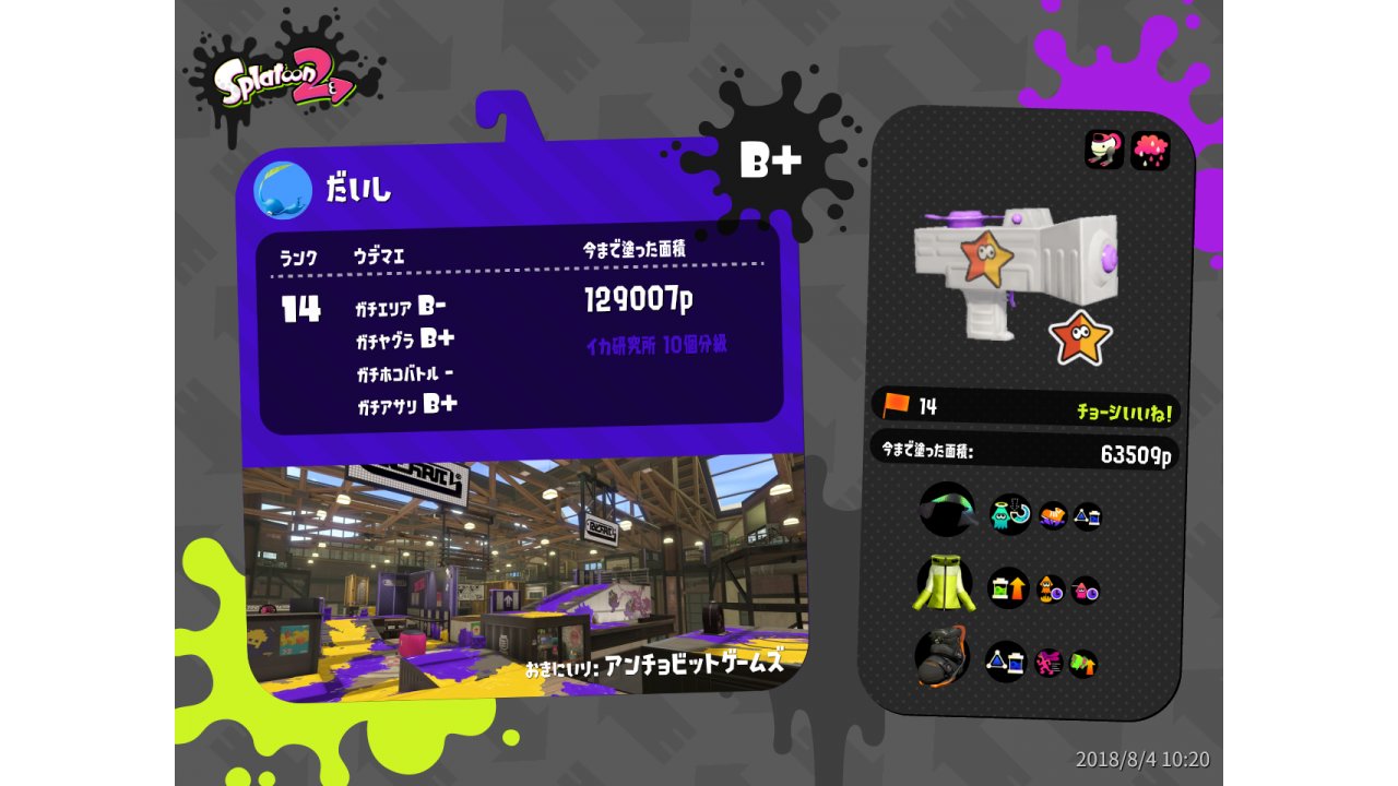 | Name | Weapon | Level | Rank | Inked | k+a/sp | k/d |